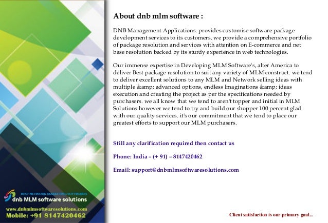 MLM software and we understand the MLM business much better than a traditional software development company or programmer. This means auto-shipment, credit card payment details, sponsorship code and name are all catered for. It also includes the ... Read Content